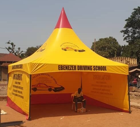 The standard fabric is white PVC-coated polyester with three walls and a roof cover, designed to withstand outdoor conditions. Windows are made from clear PVC material to provide natural lighting and visibility. The frame is built from strong steel alloy for enhanced durability and stability. The 50-seater tent design can be customized to include a 4th wall and/or groundsheet for full enclosure and comfort. Tent walls or roof can be branded with logos, messages, or event themes upon request. Each tent comes with a packing bag for convenient transport and storage.